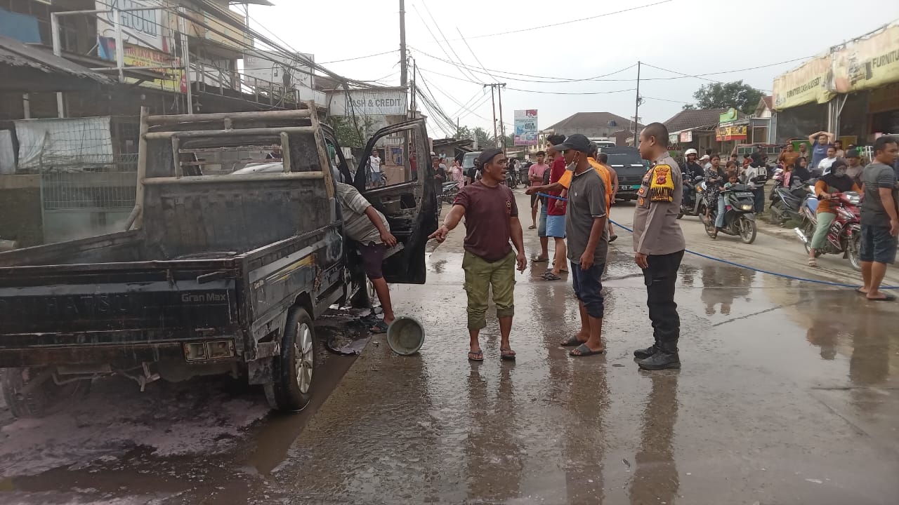 RASIOO.id – Suasana Jumat pagi di Jalan Raya Pasar Cicangkal, Desa Tamansari, Kecamatan Rumpin, Kabupaten Bogor, mendadak mencekam. Sebuah mobil pick up jenis Grand Max dengan nomor polisi F 8449 GL hangus dilalap api, diduga akibat korsleting listrik yang memicu ledakan bahan bakar.