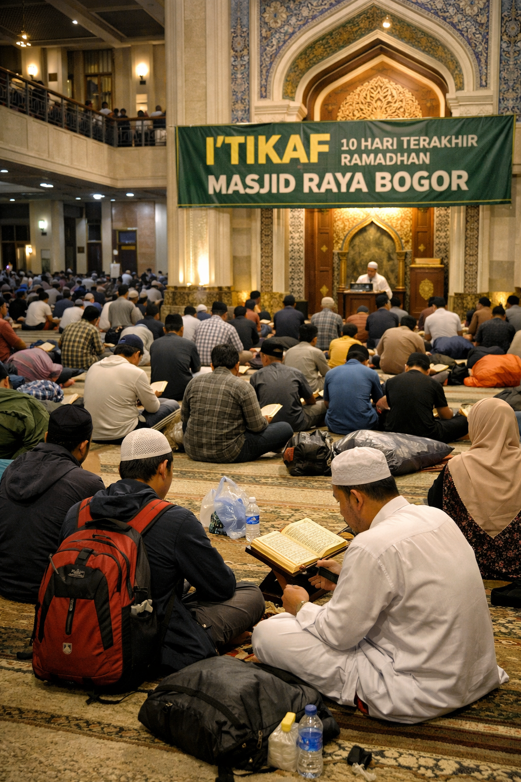RASIOO.id – Memasuki sepuluh malam terakhir bulan suci Ramadhan, sejumlah masjid di Kota Bogor mulai dipadati jamaah yang melaksanakan iktikaf. Suasana khusyuk dan penuh kekhidmatan terasa sejak malam hari, terutama usai salat tarawih hingga menjelang sahur.