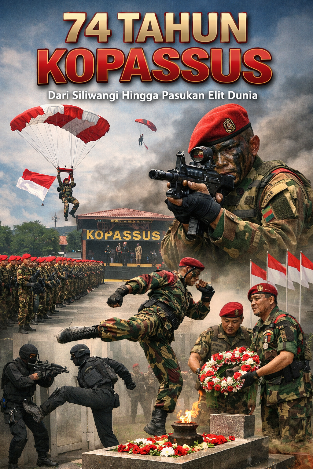 RASIOO.id – Tanggal 16 April 2026 menjadi momen bersejarah bagi Komando Pasukan Khusus (Kopassus). Korps Baret Merah genap berusia 74 tahun, menandai perjalanan panjang sebagai salah satu satuan elit paling disegani, tidak hanya di Indonesia tetapi juga di dunia.