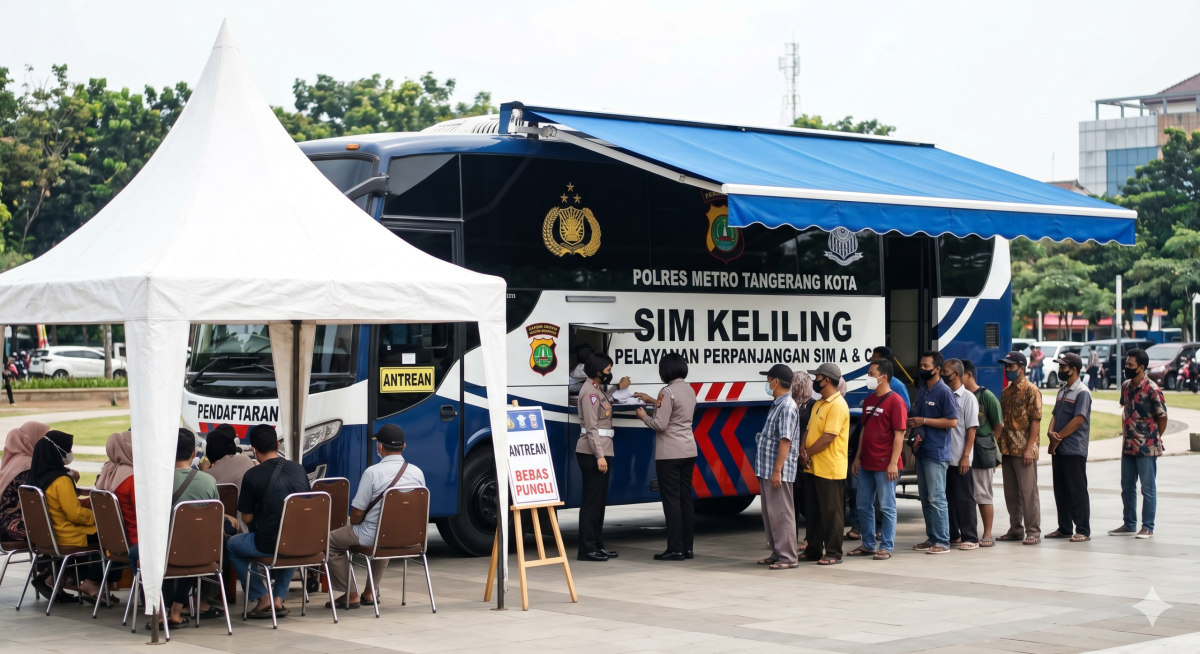 RASIOO.id – Layanan SIM Keliling dari Polres Metro Tangerang Kota kembali hadir untuk mempermudah warga yang ingin memperpanjang masa berlaku SIM tanpa harus ke kantor Satpas.